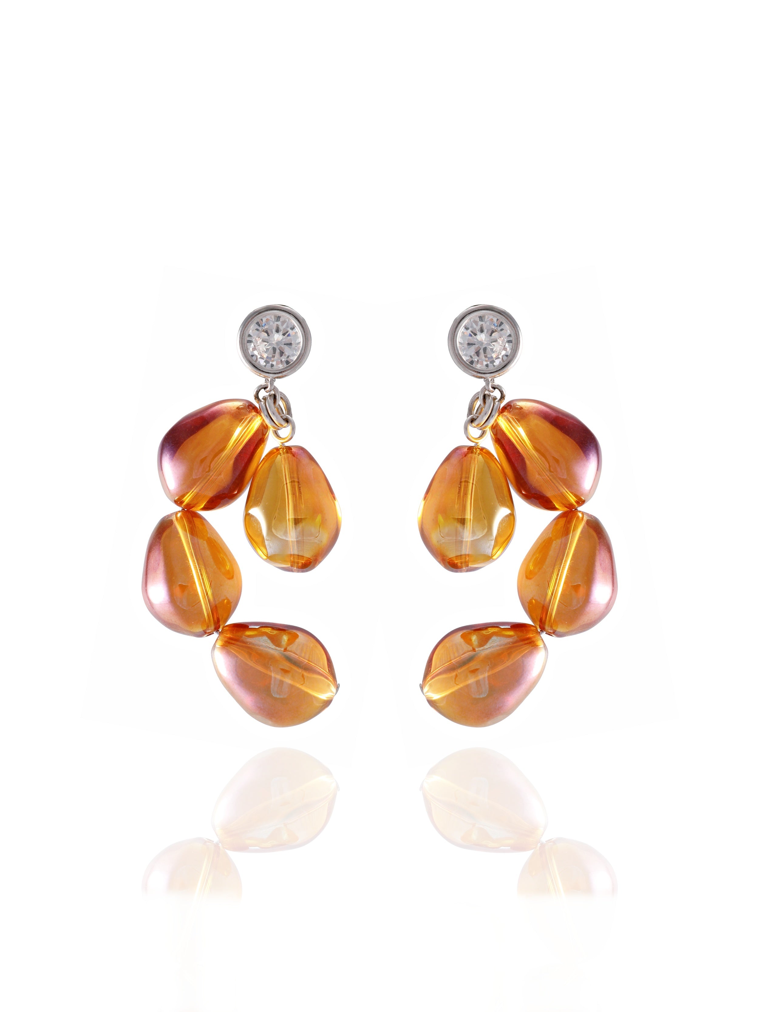 - Features free form orange glass beads in ombre hues.