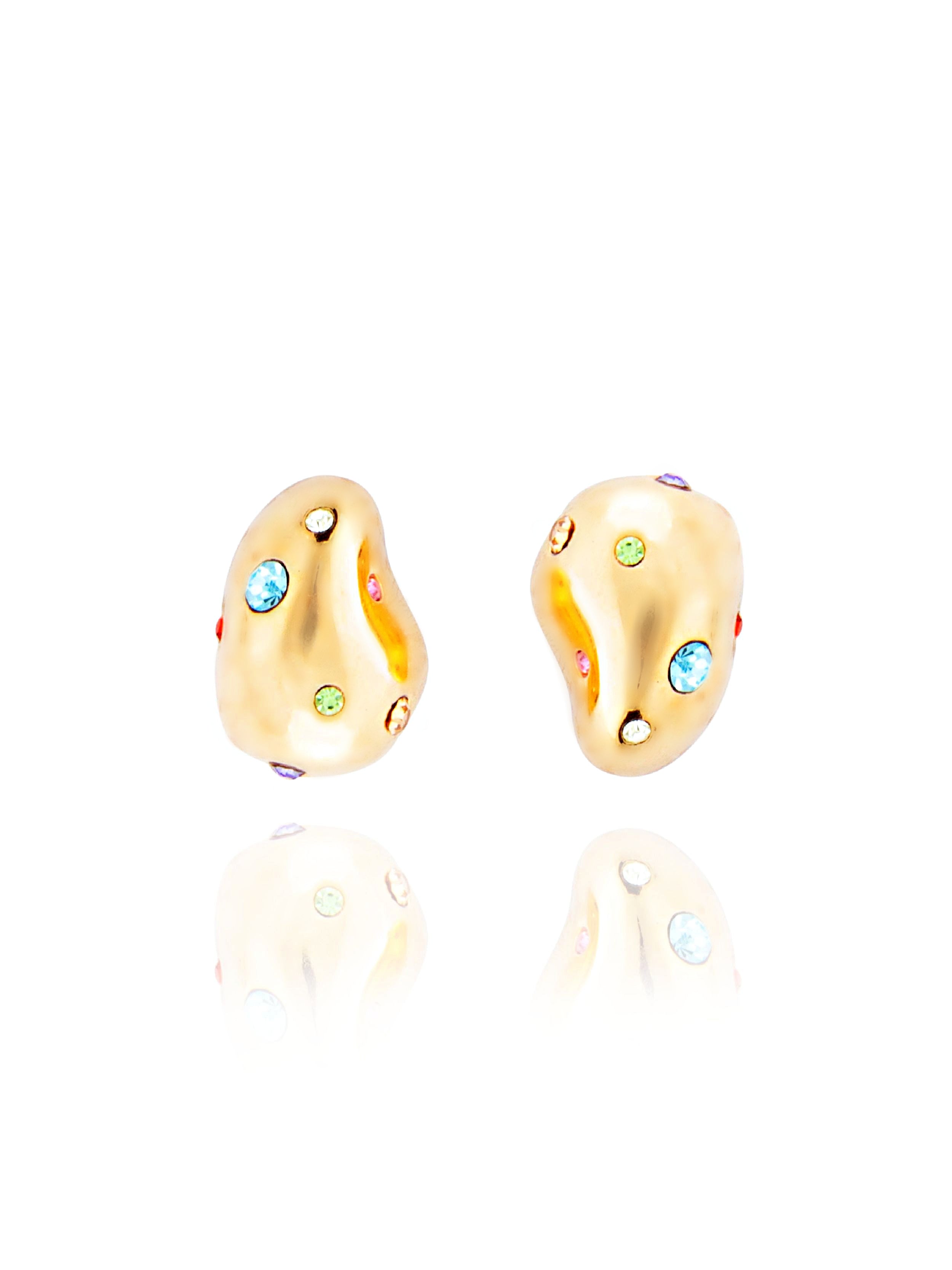 Sculptural, bean-shaped earrings with crystal rhinestones.