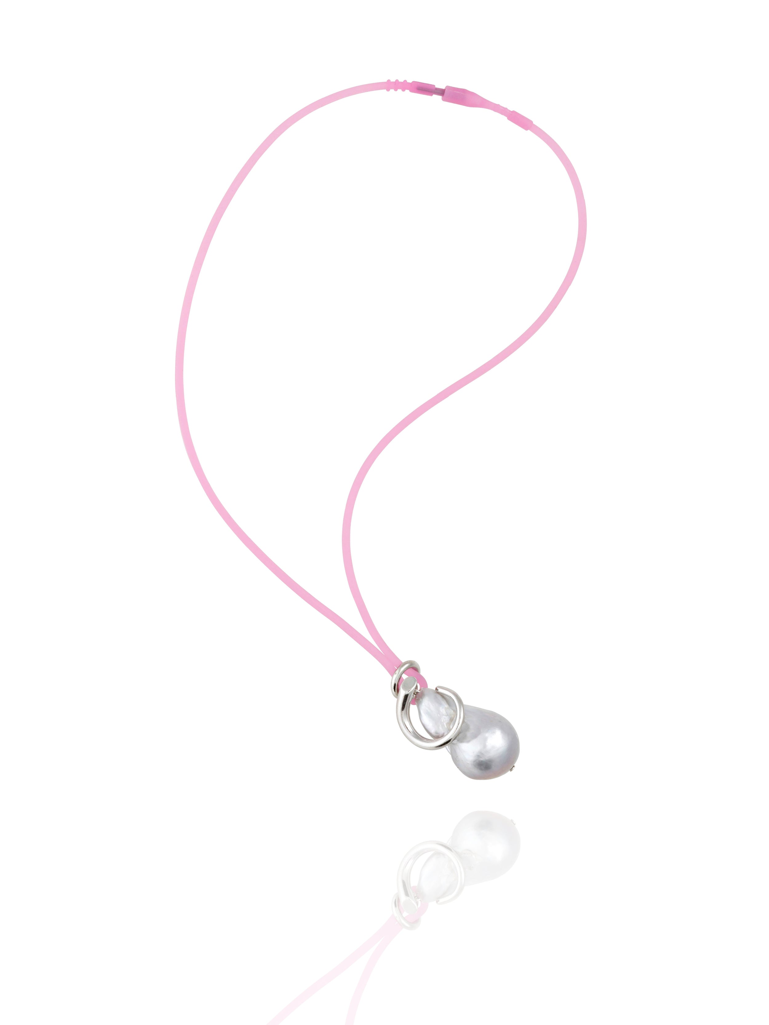 • Pink silicone cord necklace.